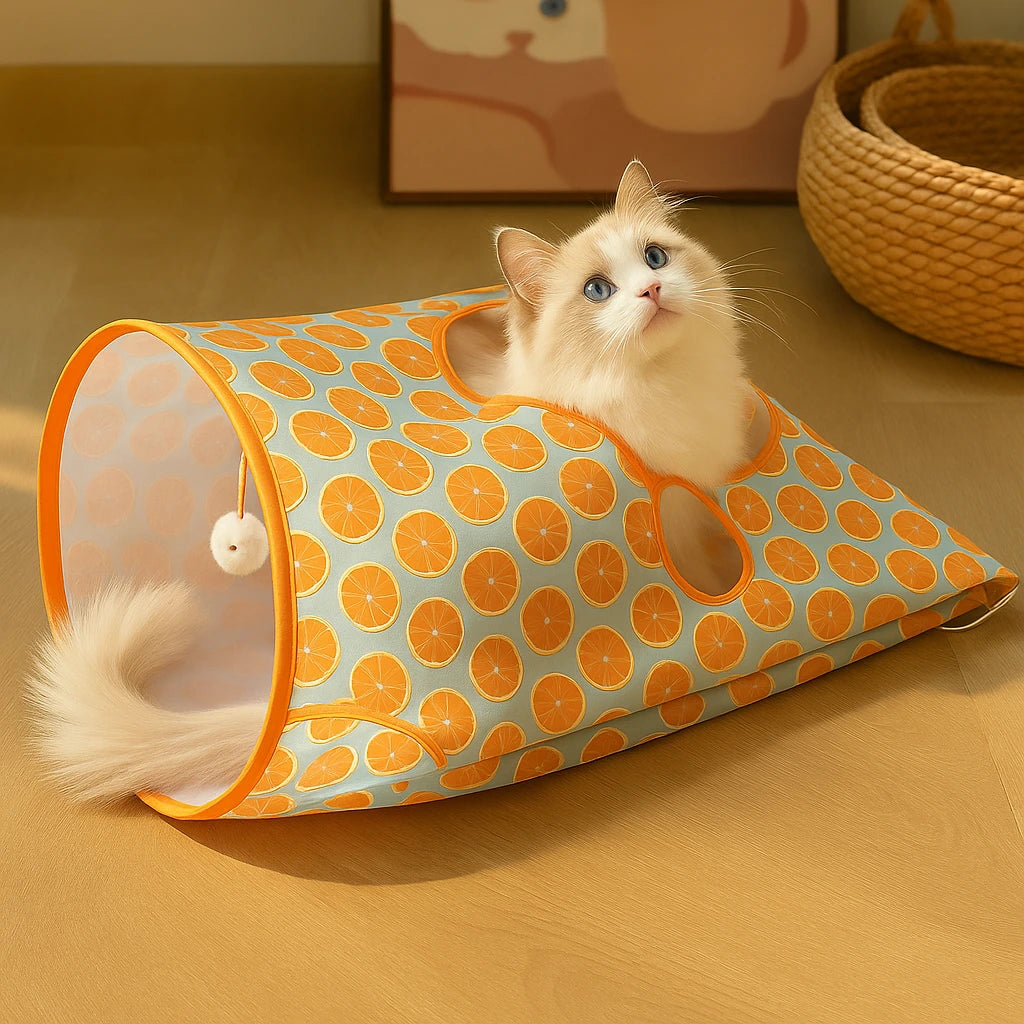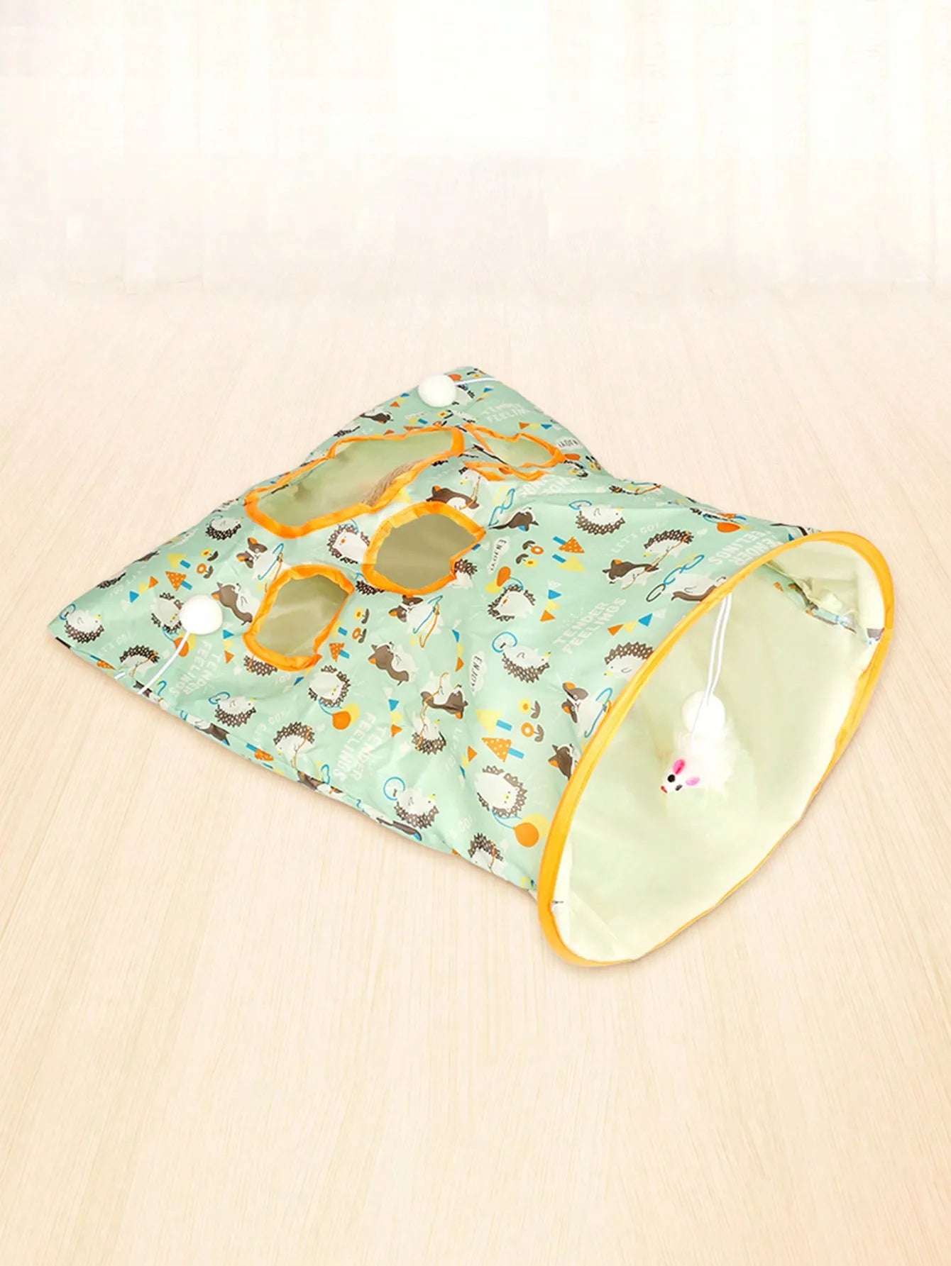 Hopfällbar Kattunnel med Kraschpapper & Hängande Leksak