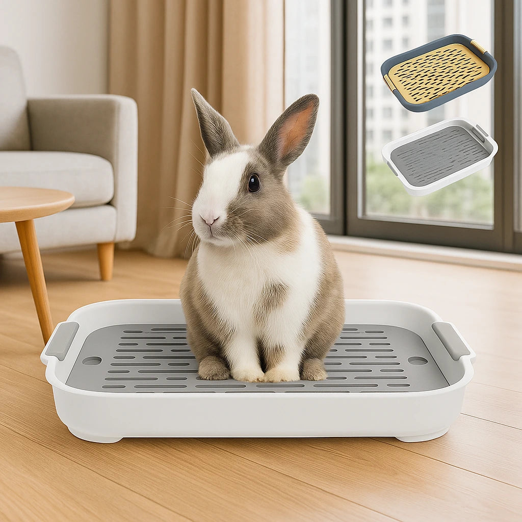 Denna dubbelbottnade toalettlåda är designad för att hålla tassarna torra och buren fräsch. Perfekt för kaniner, marsvin, hamstrar, illrar och andra smådjur.