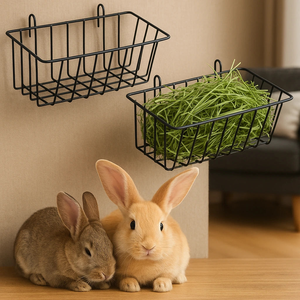 Ge din kanin eller marsvin en ren och organiserad plats att äta hö på! Denna höställ i kraftig metall håller fodret på plats och minimerar spill, samtidigt som den är enkel att fästa direkt på buren.