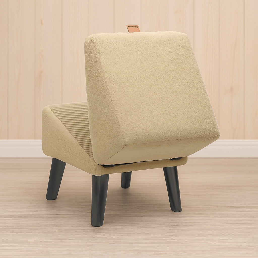 Stabil konstruktion: Tillverkad i slitstarkt trä och klädd i mjukt tyg för stabilitet och komfort.