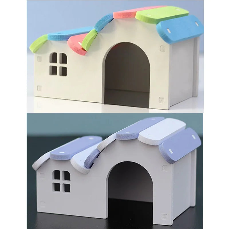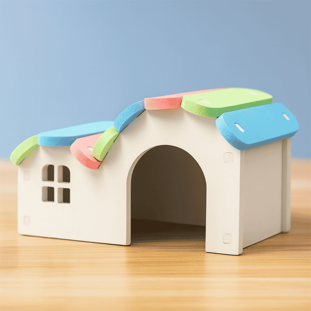 🏡Regnbågshus i Trä för Hamster – Mysigt Gömställe & Lekhus