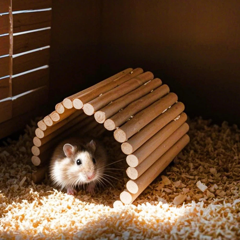 Ge ditt husdjur en naturlig och rolig miljö med denna flexibla träbro i pil. Den kan böjas och formas till en tunnel, bro eller klätterställning och fungerar samtidigt som en säker tuggyta som hjälper till att slipa tänder och klor. Perfekt för hamstrar, marsvin, kaniner, möss och andra smådjur.